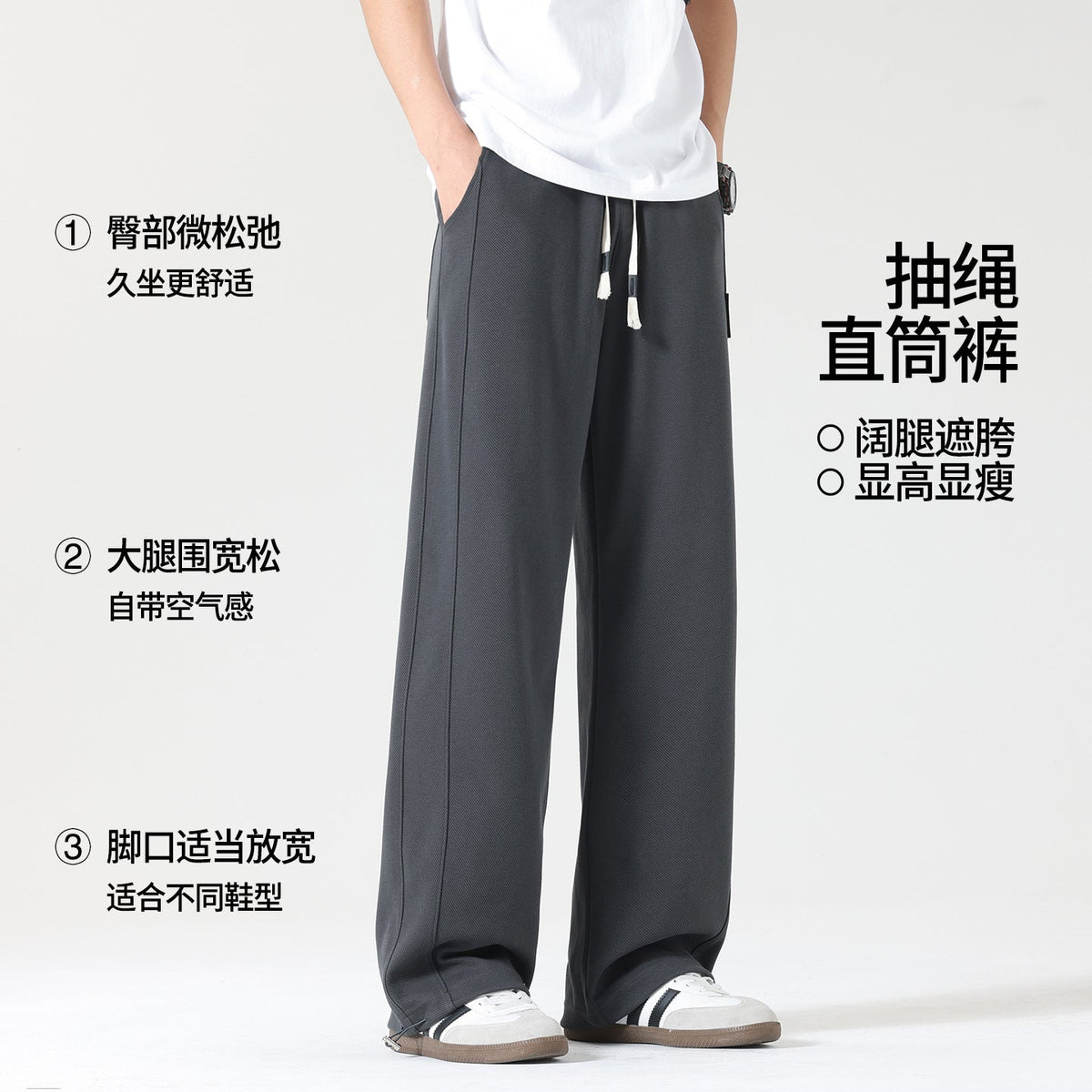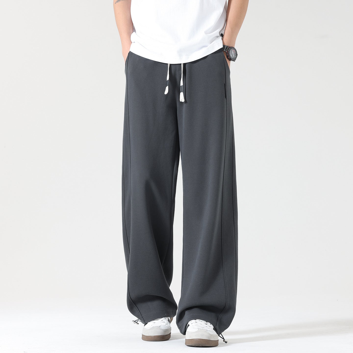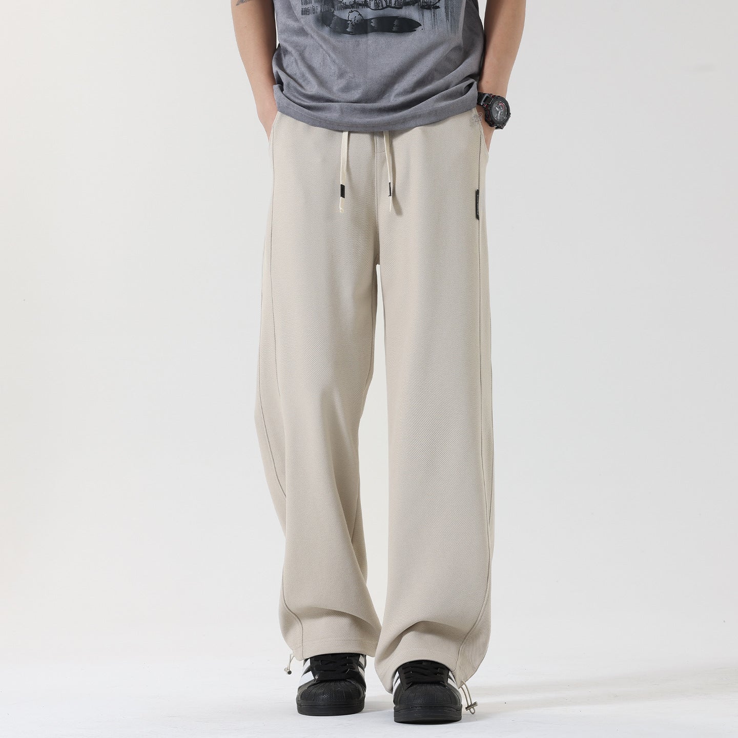 Redefine comfort this season with these men’s autumn wide-leg sports sweatpants, combining trendy drape with everyday practicality.