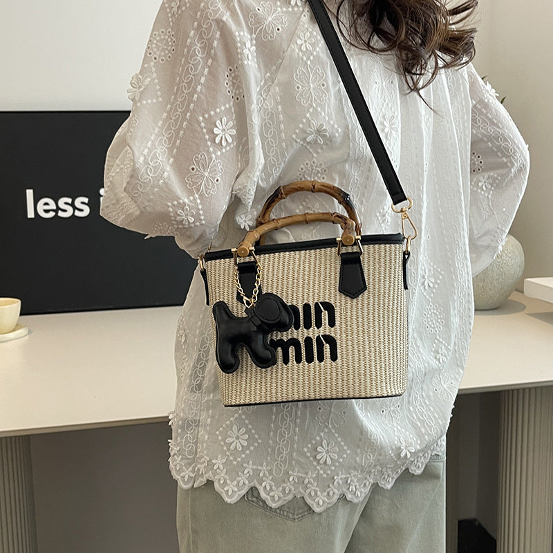 Straw Bucket Bag β Contrast Color Crossbody for Women
