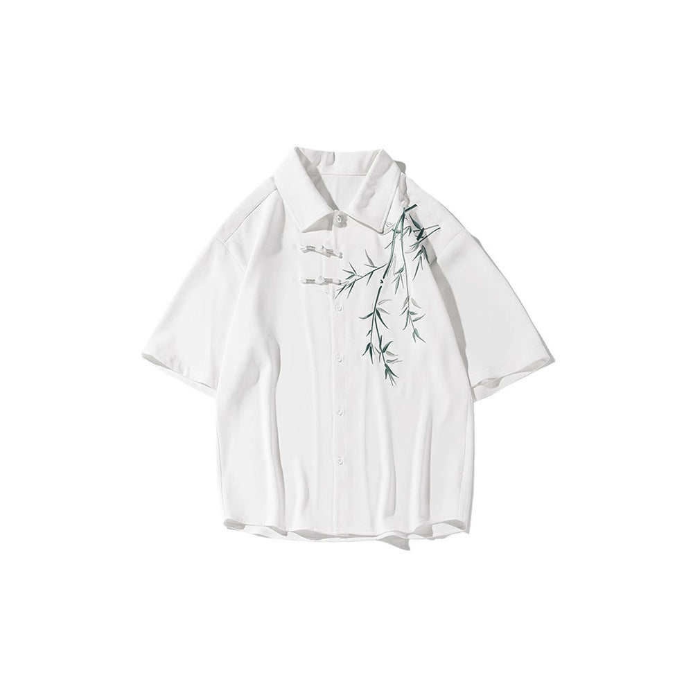 Chinese Ice Silk Buckle Shirtamboo Half Sleeve Shirt