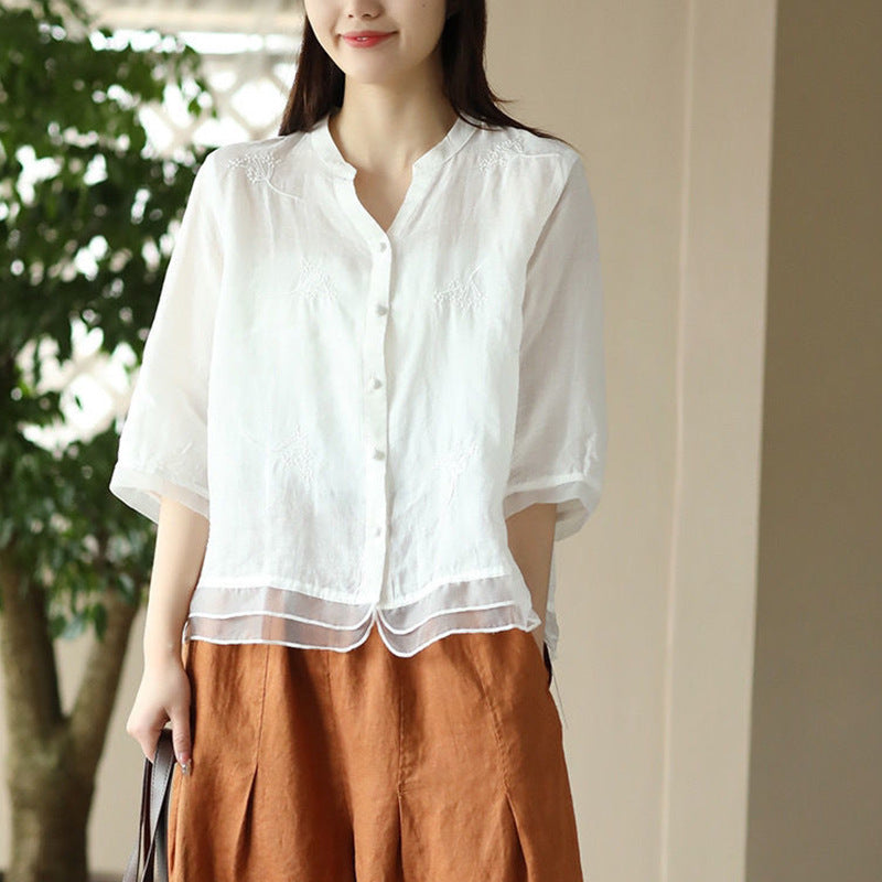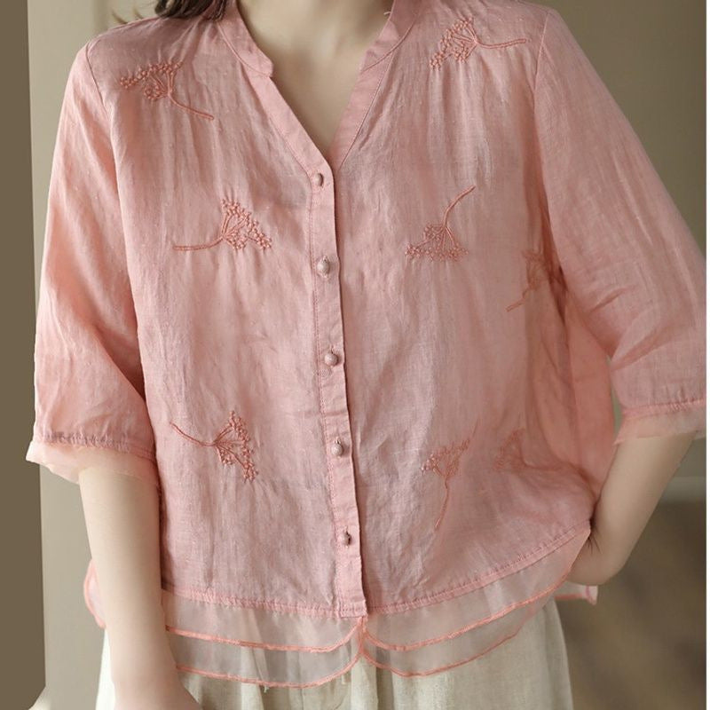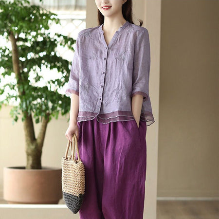 New Vintage Cotton and Linen Shirt β a perfect mix of artistry and comfort for women who appreciate refined fashion! πΏπ Crafted from breathable cotton and linen, this cardigan-style shirt features delicate embroidery and tasteful stitching details that highlight your unique style and temperament. β¨π§΅