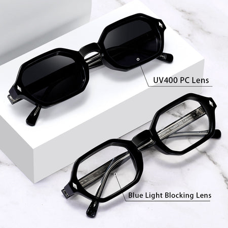 Made from durable propionic acid material and accented with white copper pin details, these sunglasses offer both lightweight comfort and luxury vibes. The trendy geometric polygon frame is perfect for stylish explorers, artists, and everyday icons – whether you're in Bhaktapur, Butwal, or Boudha.