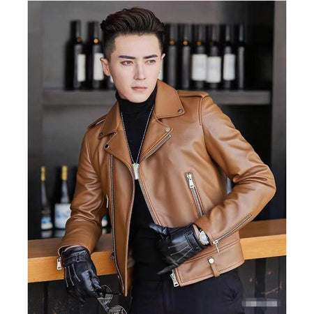 2025 Slim Korean Men’s Leather Jacket | Spring Autumn Motorcycle