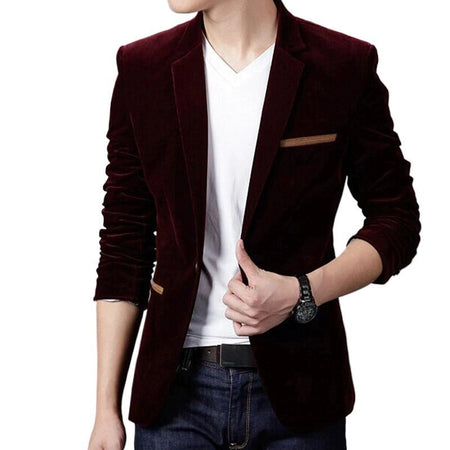Stay sharp this season with this slim-fit corduroy suit jacket. Perfect for spring and autumn, it combines retro charm with modern tailoring for a polished, versatile look.