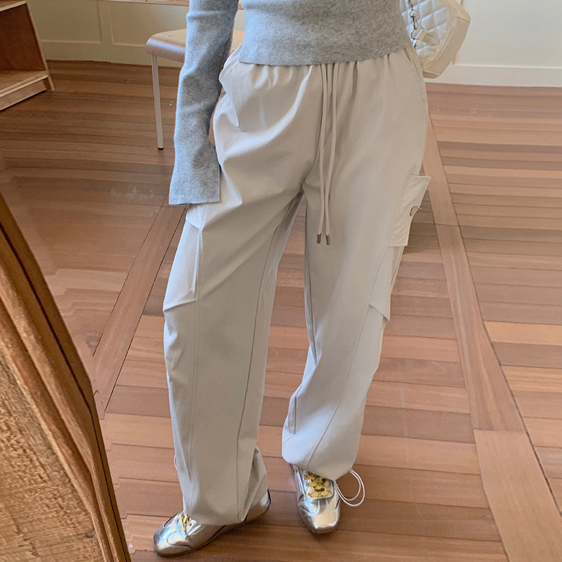 Made from soft, breathable fabric, these pants provide a comfortable drape that moves naturally with your body. The adjustable drawstring waist ensures a perfect fit for all body types, while the straight-to-wide leg design gives a relaxed, vintage-inspired silhouette. Perfect for casual outings, streetwear, or weekend leisure, these pants are versatile and easy to style with blouses, t-shirts, or sweaters.