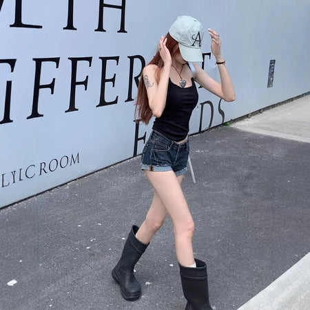 Fuiv Low Waist Denim Shorts – Sexy Frayed Edge Hip-Huggers