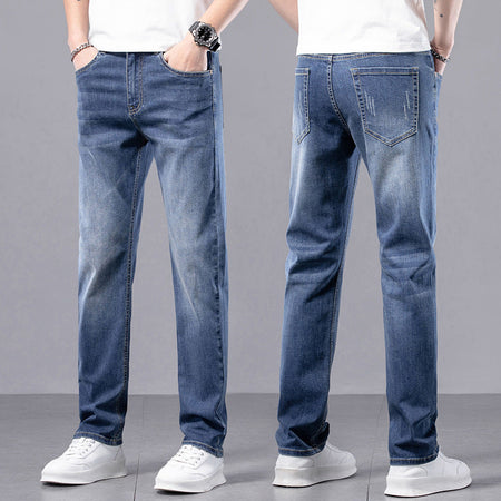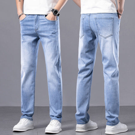 Stay cool and stylish this summer with 2025 Summer Ice Silk Thin Jeans for Men. Crafted from premium ice silk fabric, these pants are lightweight, breathable, and soft to the touch, making them perfect for hot summer days. Featuring a straight slim-fit cut with stretch, they combine comfort and trendiness for young, fashion-conscious men.