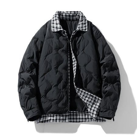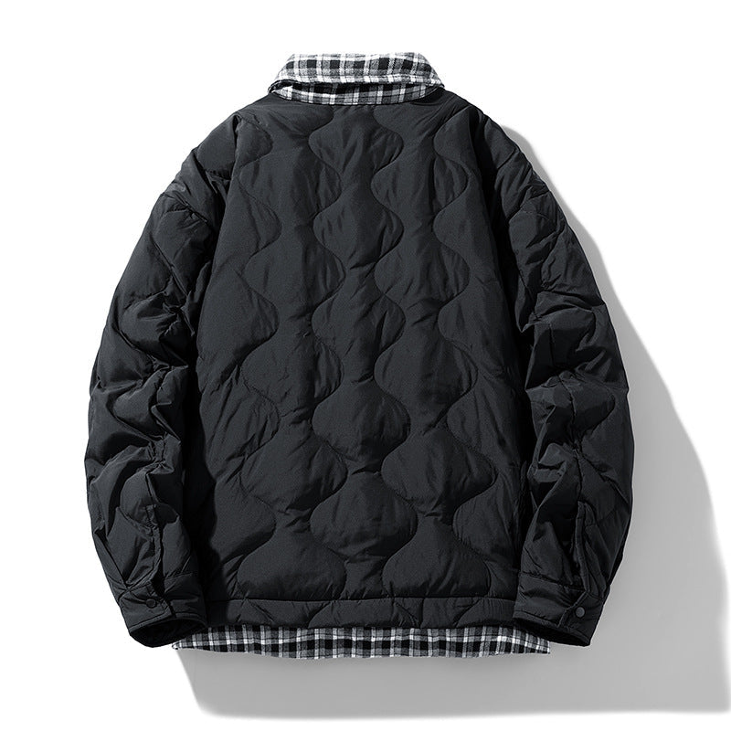 Men’s Lapel Puffer Jacket – Japanese Style Fake Two-Piece
