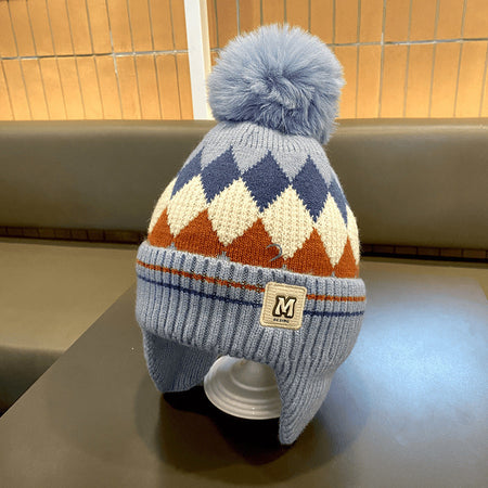 2025 Winter Warm Children's Hat Knitted Wool Velvet Ear Hats