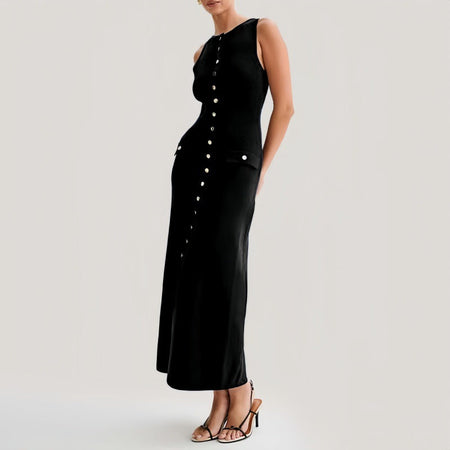Step into the 2025 summer season with this elegant European and American-inspired sleeveless long dress, designed for modern women who love style and sophistication ๐โ๏ธ. Featuring a flattering round neck, single-breasted design, and high-waist silhouette, this slim-fit dress enhances your curves while offering a graceful and confident look. Perfect for parties, banquets, or special events, it combines classic elegance with contemporary fashion trends.