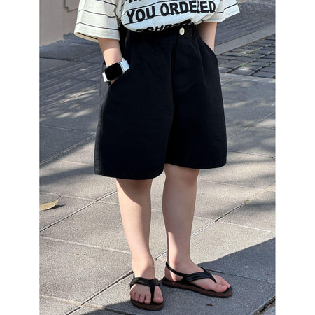 Kids’ Solid Color Washed Cotton Loose Shorts