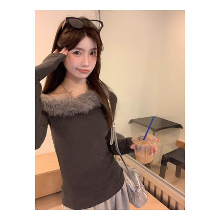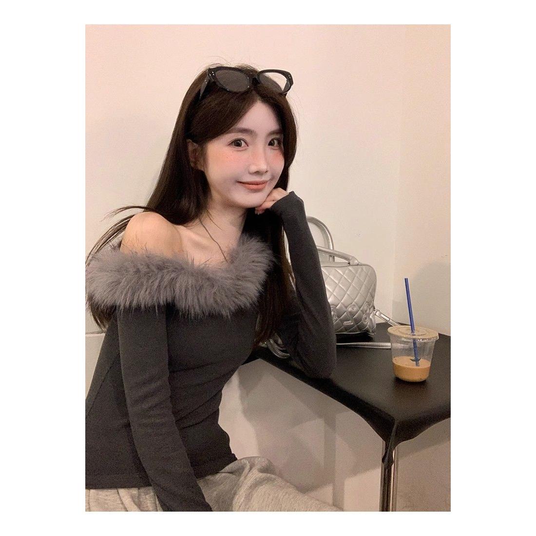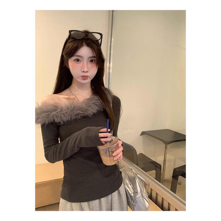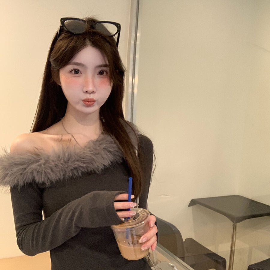 Velvet Open Shoulder Slim Jacket β Trendy Gray Look