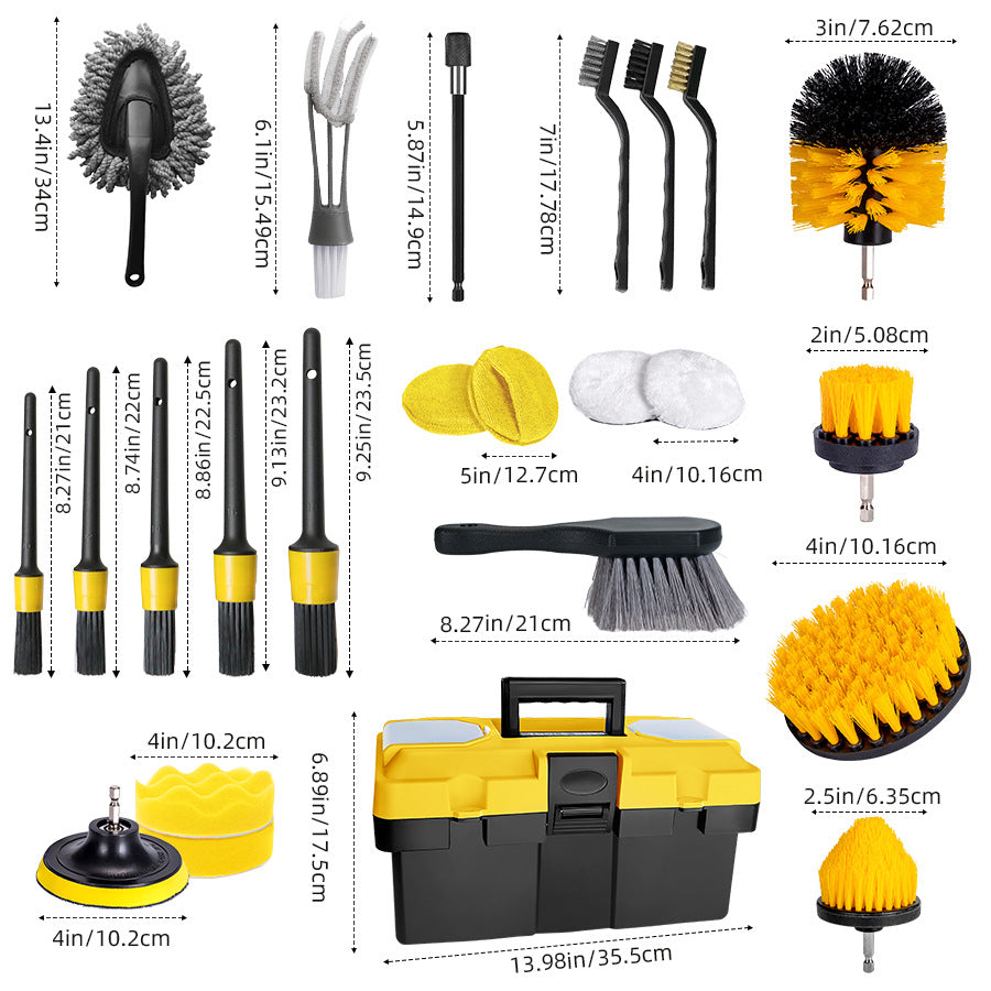 Made for durability and repeated use, this 27-piece toolbox cleaning suit is suitable for both home car care and professional detailing. The brushes are designed to balance strong cleaning performance with surface safety, making them reliable for routine maintenance. The complete set keeps tools organized and ready for quick access.
