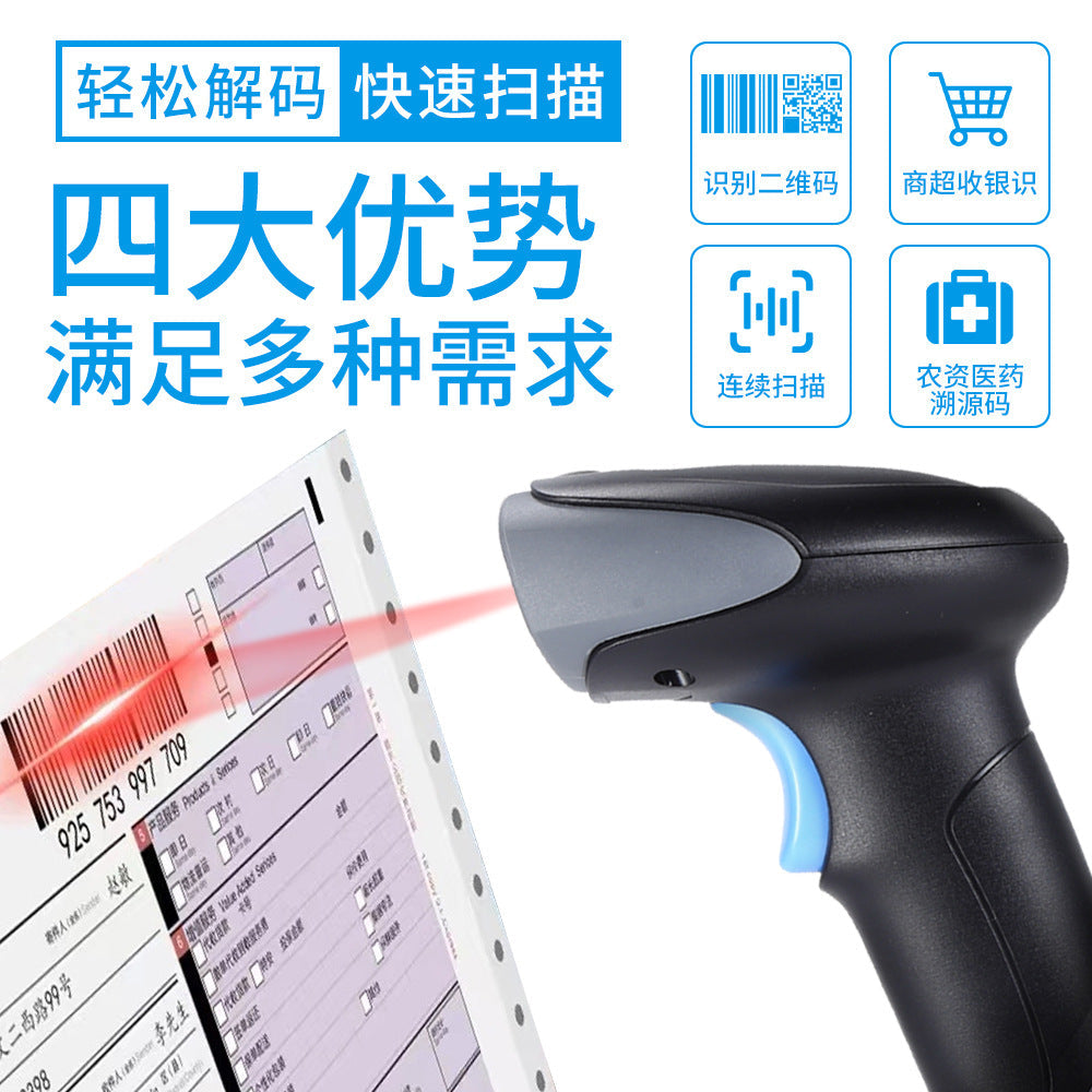 Streamline your checkout and inventory processes with this 2D Wireless and Wired Barcode Scanning Gun. Perfect for supermarkets, warehouses, and express logistics, this versatile scanner handles both one-dimensional and two-dimensional codes with speed and precision, making it an essential tool for modern businesses. 🛒📦