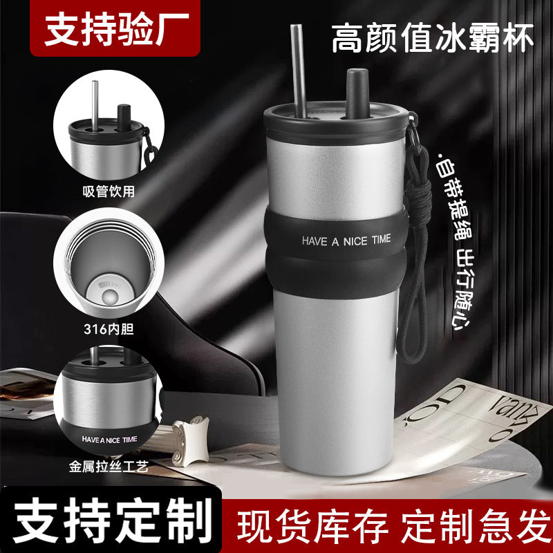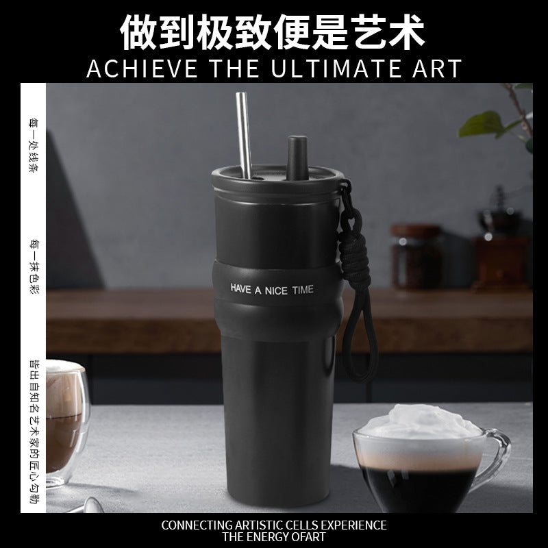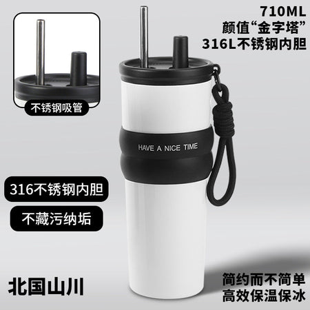 316 Steel Ceramic Thermos Cup β Stylish Straw Ice Mug