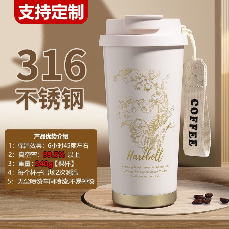 ββ¨ Sip in style with this beautiful 316 stainless steel insulated coffee cup featuring a trendy Lily of the Valley design and a convenient straw lid! Whether you're heading to work, class, or just relaxing at home, this high-value thermos cup keeps your favorite drinks hot or cold for hours. π₯βοΈ