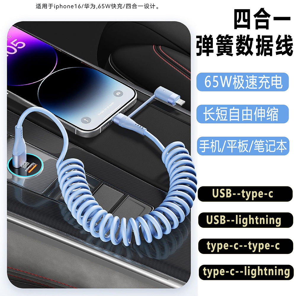 4-in-1 Spring Data Cable Apple Huawei Xiaomi Type-C CarPlay