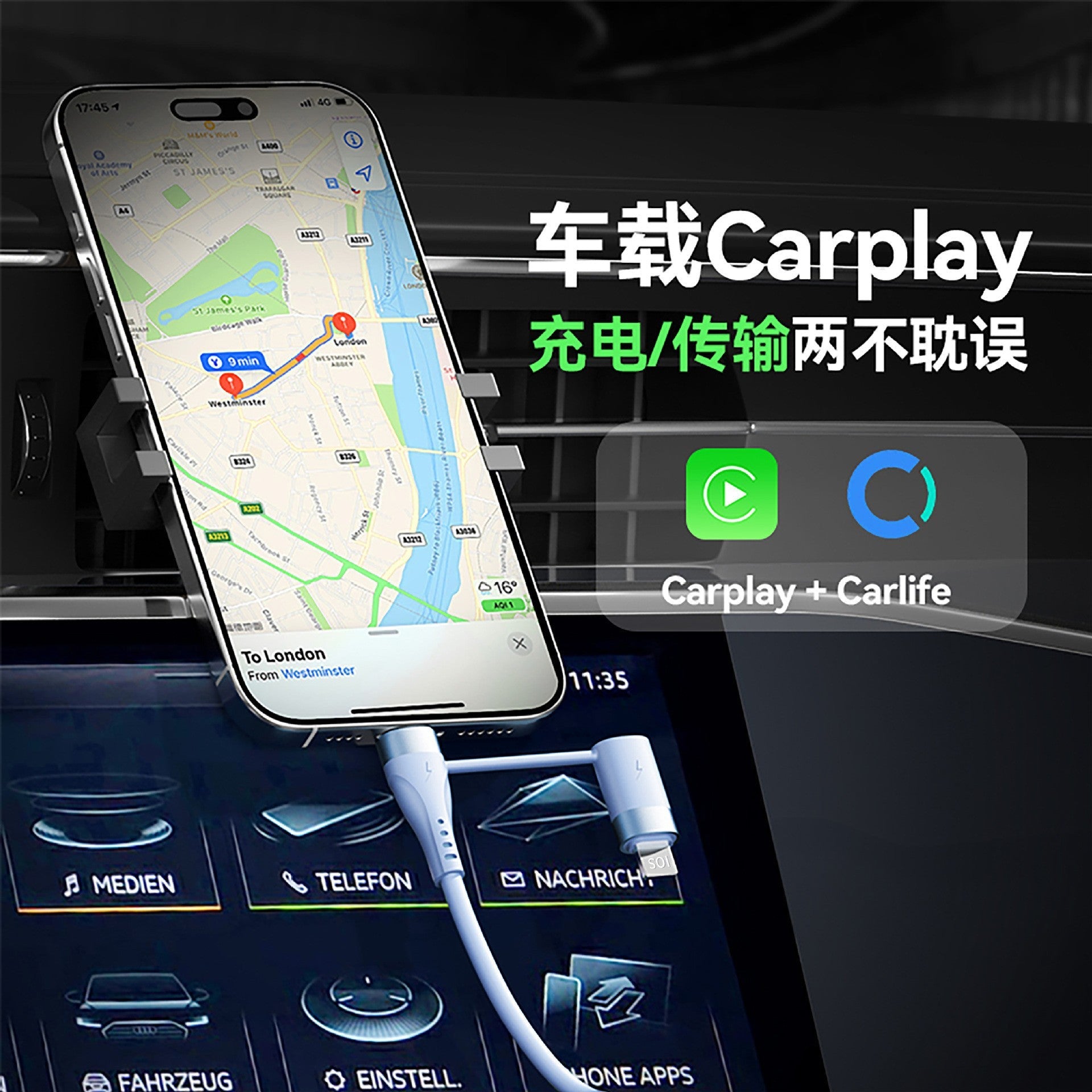 Charge multiple devices with just one cable thanks to its multi-head design π. Whether you're using Lightning, Type-C, or Micro USB, this cable powers up your devices fast and reliably π. It supports data transmission and navigation features like CarPlay and Android Auto, making your driving experience smarter and safer π¦.