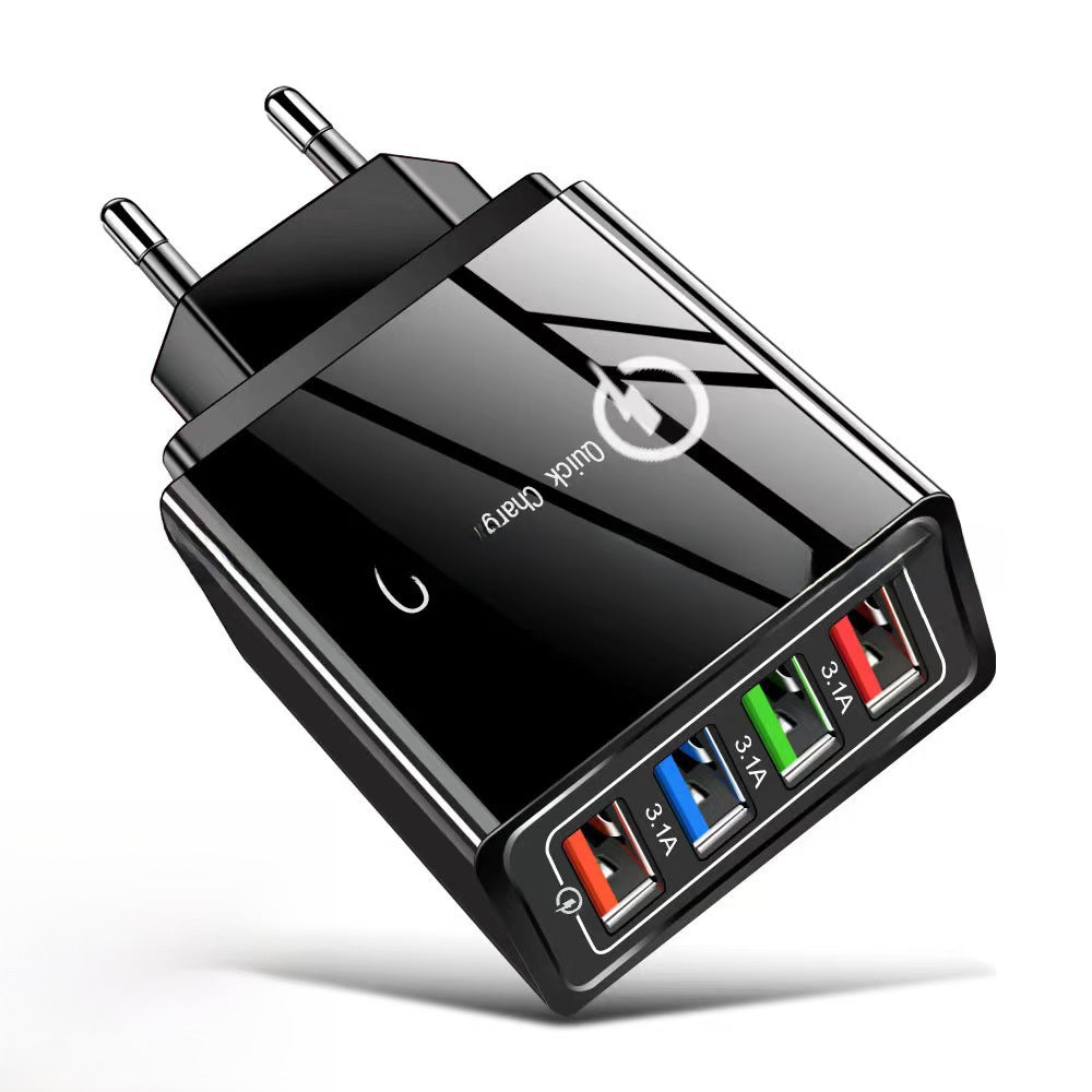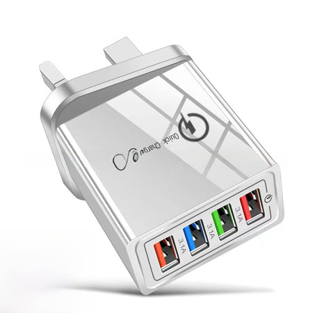 Power up all your gadgets at once! π This 4-USB Multi-Port Charger delivers 5V 3A output and comes with UK, US, and EU standard plugsβmaking it your go-to travel charger πβοΈ