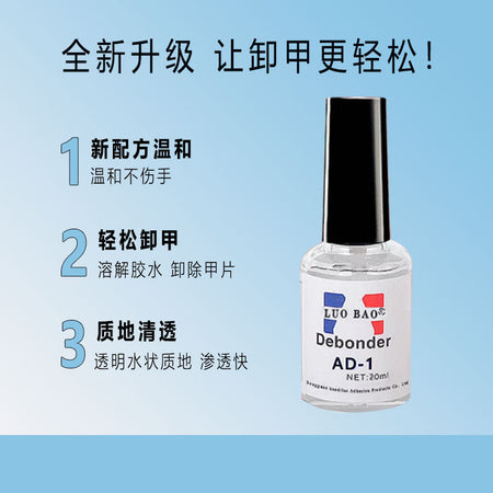 Easily remove stubborn adhesives and manicure residue with the 502 Glue Degluing Agent AD-1, a multi-purpose remover designed to dissolve 401 glue, 502 glue, and gel nail polish without damaging your skin. Perfect for nail salons, DIY manicures, and general adhesive clean-up, this remover is gentle on hands yet tough on glue.