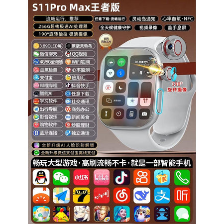 The Huaqiangbei S11 Smart Watch works as a phone watch with plug-in SIM support. Perfect for adults who want calling, messaging, and smartwatch features together.