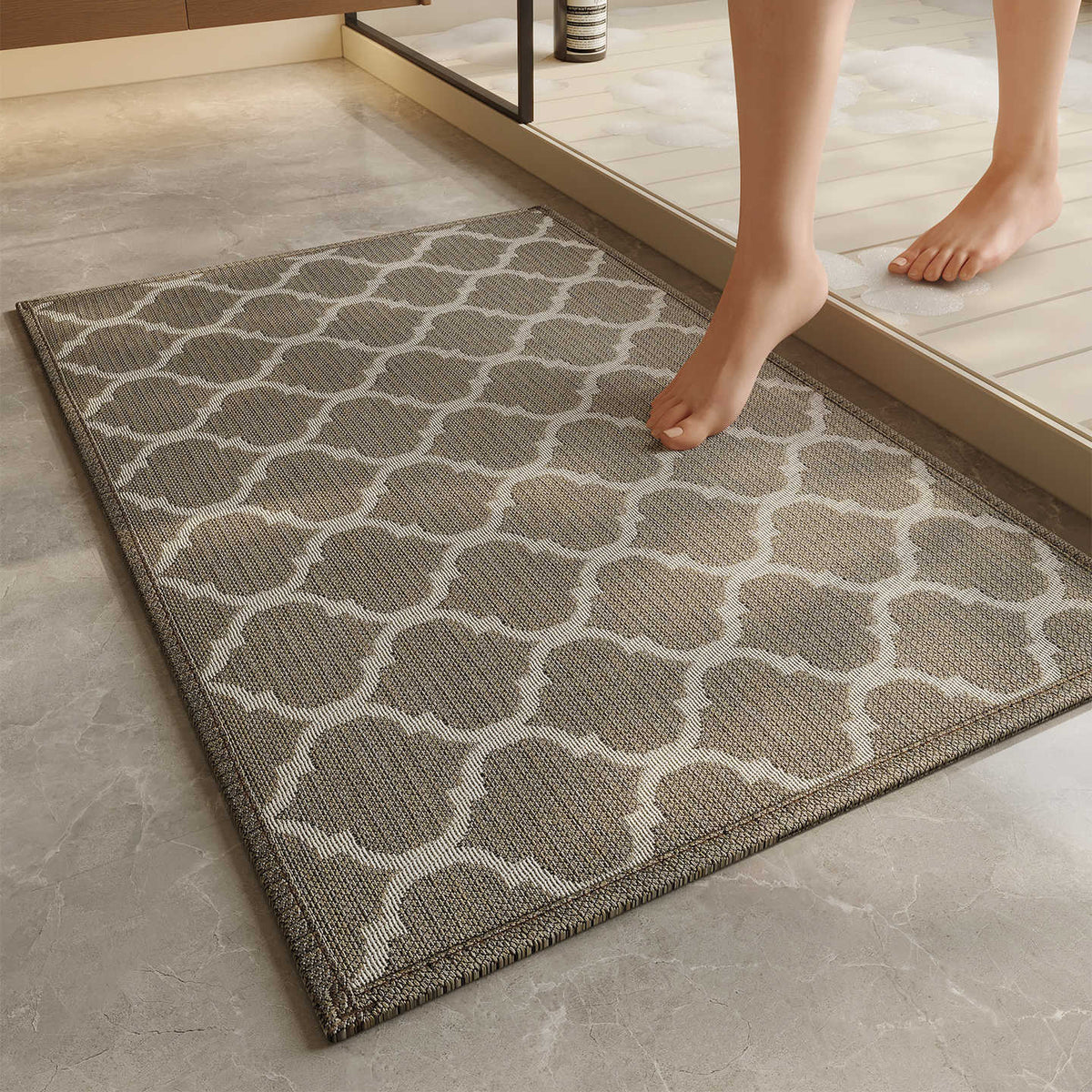 Elevate your home to the "Mansion Standard" of global design. The 2026 Cross-Border Simple Series is the definitive "Senior" choice for those who appreciate the intersection of high-end textile aesthetics and advanced material science. This mat brings a "Light Luxury" woven look to your bathroom while delivering the elite performance of soft diatomite.