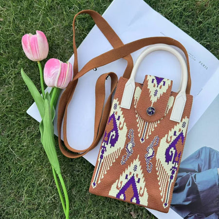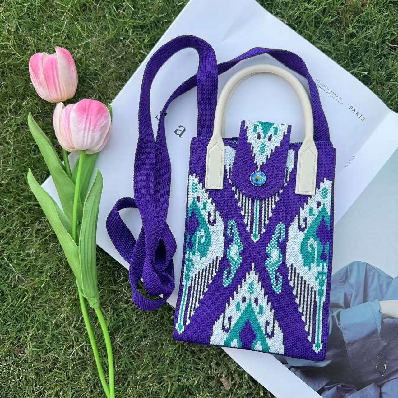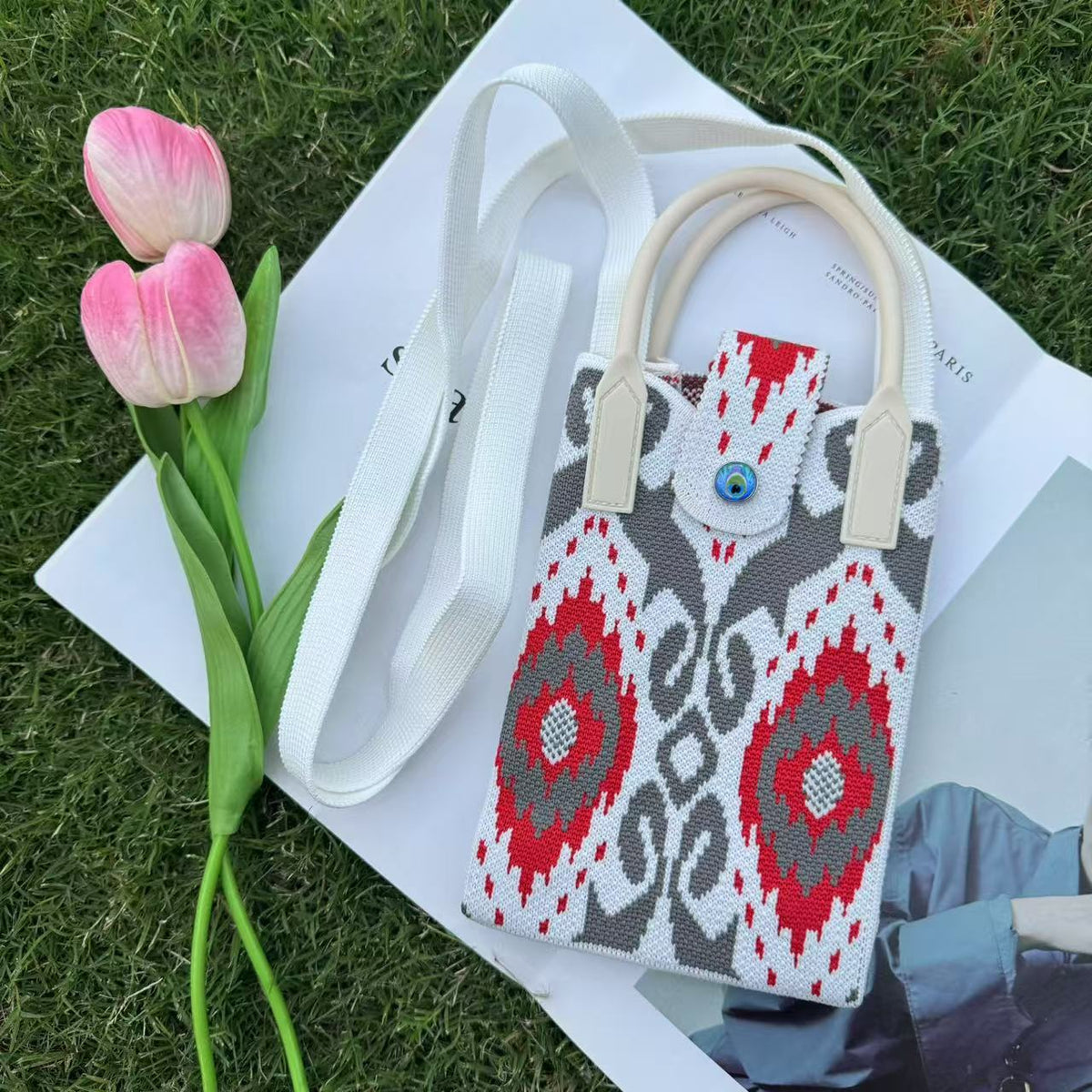 Adelais Ethnic Style Knitted Crossbody Phone Bag