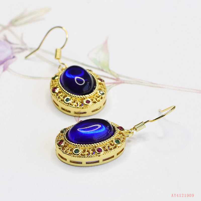 Add Parisian elegance to your style with the Aiyu French Retro Blue Glass Earrings – a stunning simulation of sapphire beauty. Designed with a vintage-inspired ear hook style, these earrings feature deep blue glass stones that shimmer like real sapphires. Perfect for evening wear, parties, or as a chic daily accessory. 🇫🇷✨