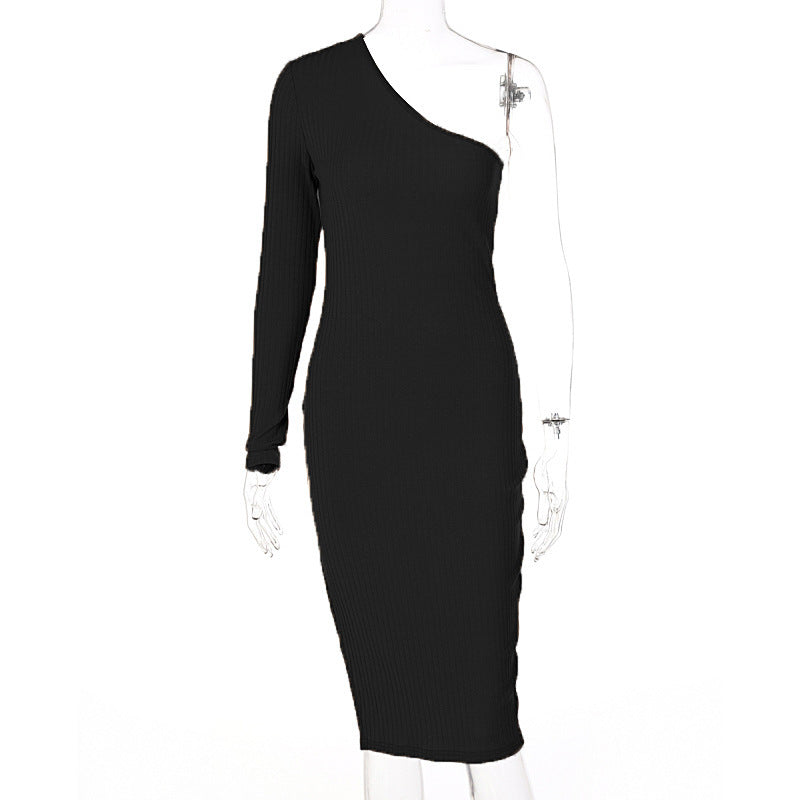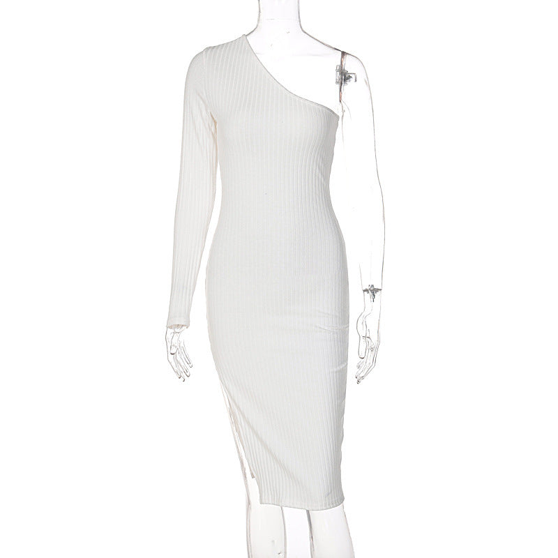 The oblique shoulder and side split design adds a subtle touch of sophistication, giving your look a chic and playful vibe. Its versatile solid color makes it easy to pair with boots, heels, or sneakers, creating a polished outfit for any occasion. The soft knit fabric ensures comfort while providing a flattering fit that complements your silhouette effortlessly. π