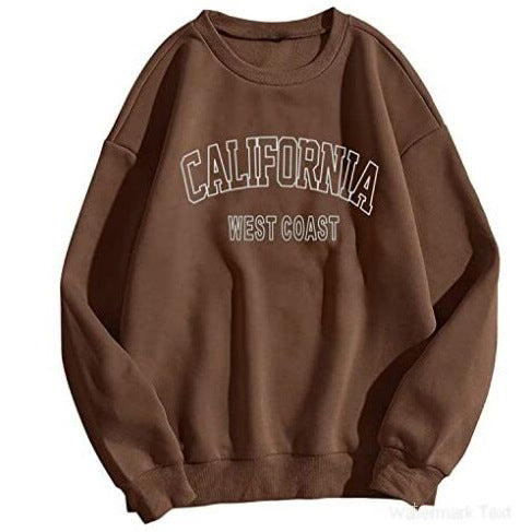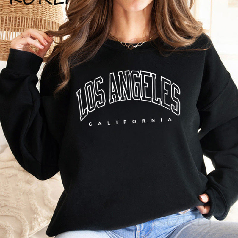 Women’s Printed Fleece Sweater – Los Angeles Round Neck Top