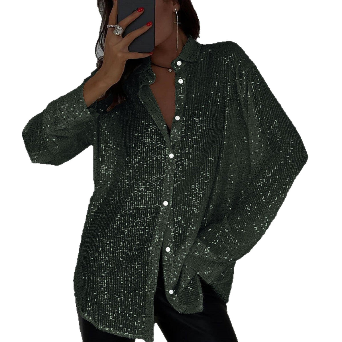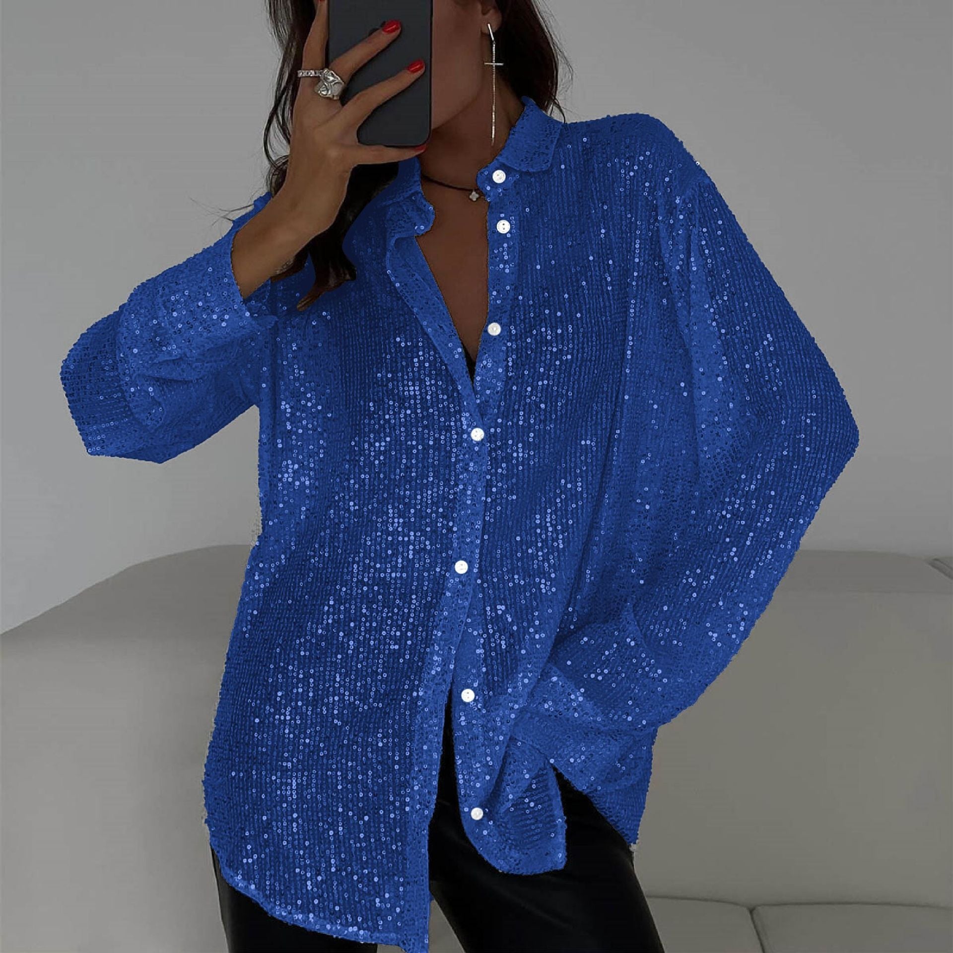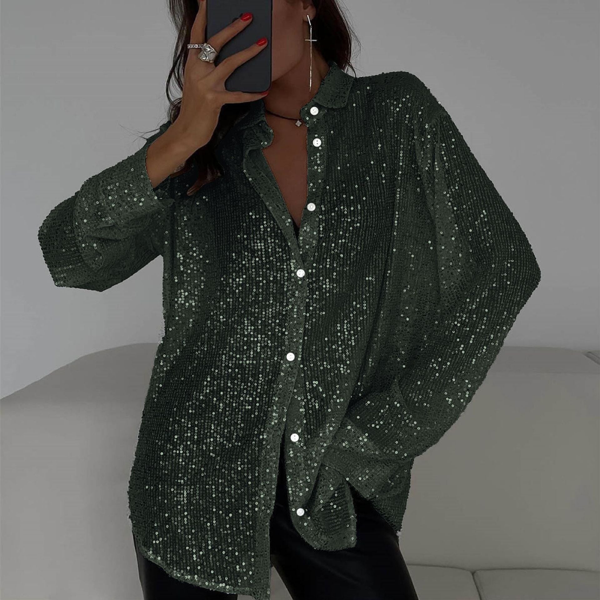 Shine bright wherever you go with this ✨ 2025 Women's Fashion Sequin Shirt Jacket, designed with a classic lapel and long sleeves for a bold, stylish statement.