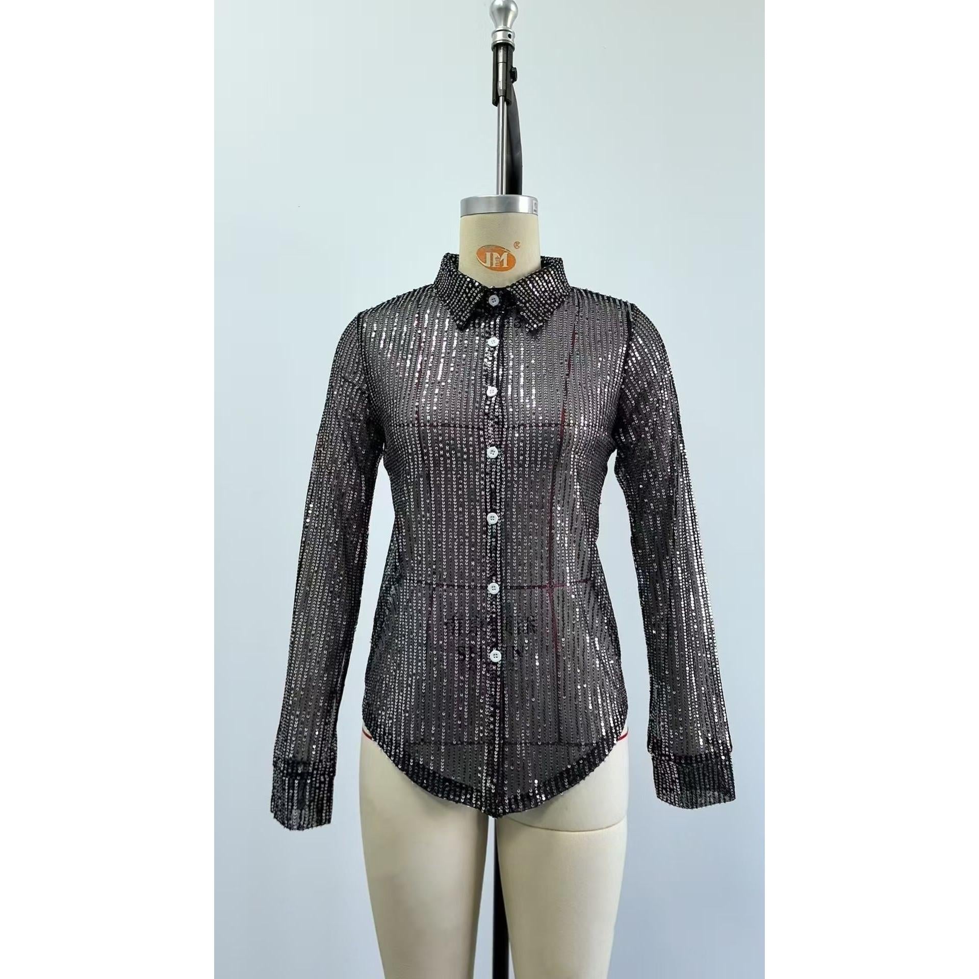 This dazzling top blends the structure of a jacket with the elegance of a sequined shirt, perfect for layering or wearing as a standout piece. Whether styled with jeans, skirts, or trousers, it instantly elevates your look with a touch of glam. 🌟