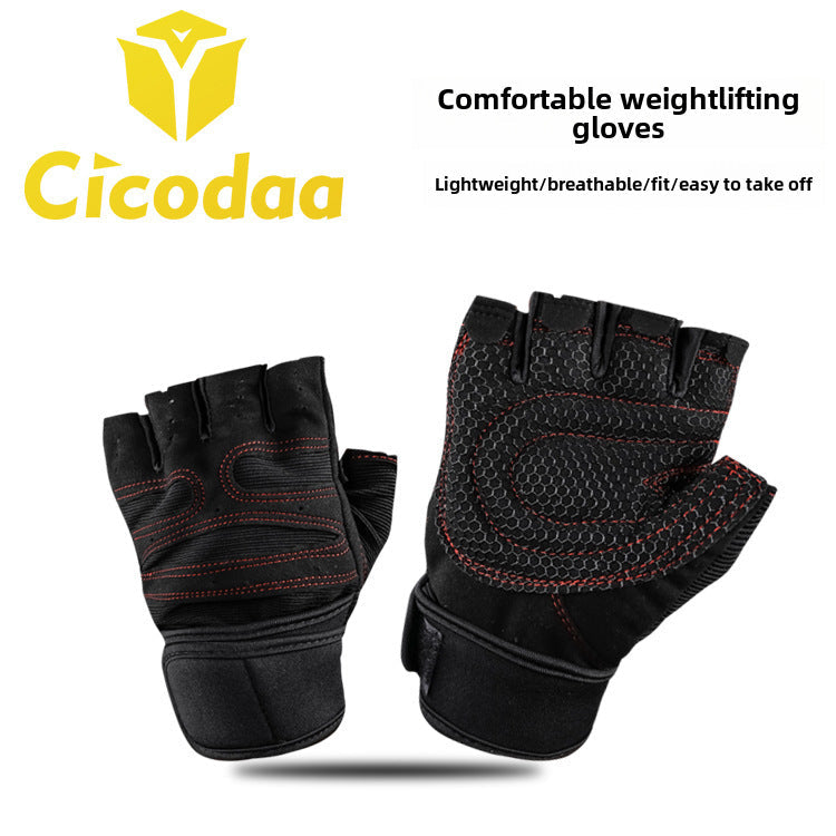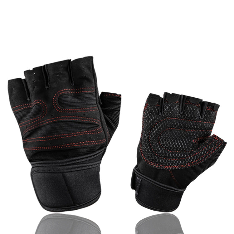 Half-Finger Gym Gloves with 4-Finger Wrist Strap Grip