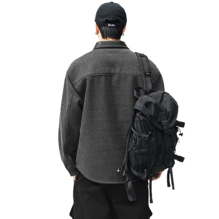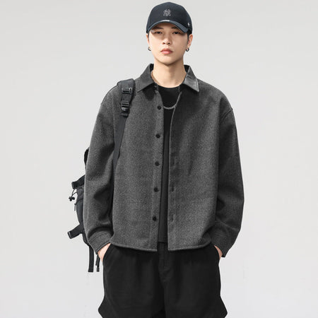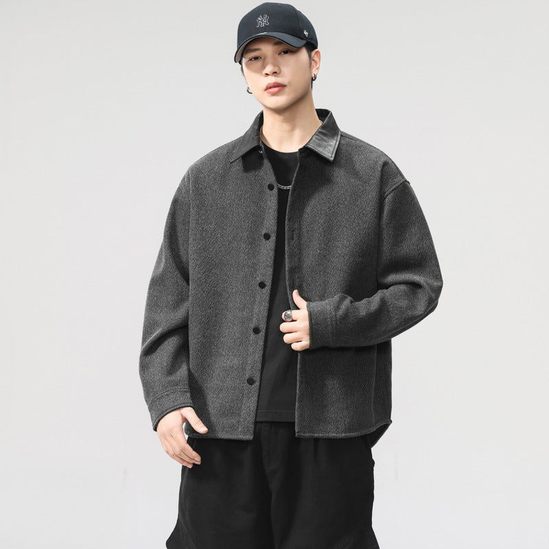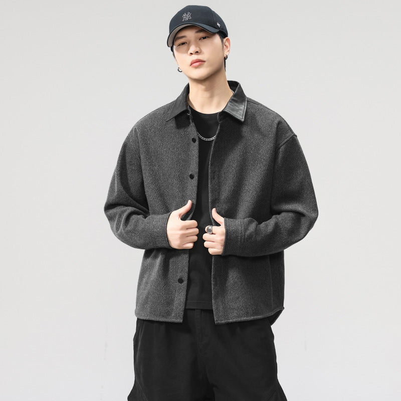 Heavy Woolen Overshirt Men’s Leather Lapel Jacket