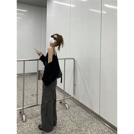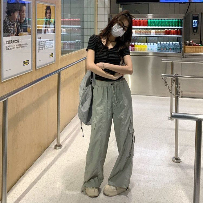 Women’s Cargo Parachute Pants – Drawstring Wide Leg