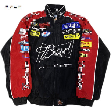 Bring classic American style to your rides with this American racing jacket for mens 2025 πΊπΈ. With cotton padding, windproof protection, and embroidered details, itβs perfect for bikers who want both fashion and function.