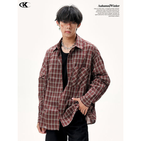 American Retro Cotton Plaid Long-Sleeve Shirt