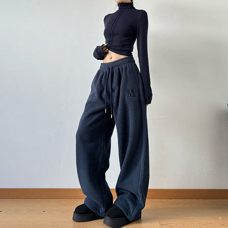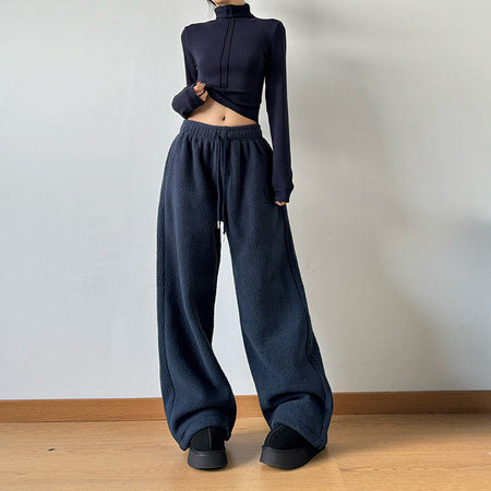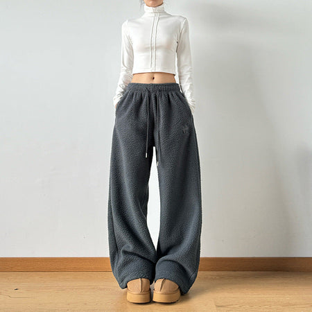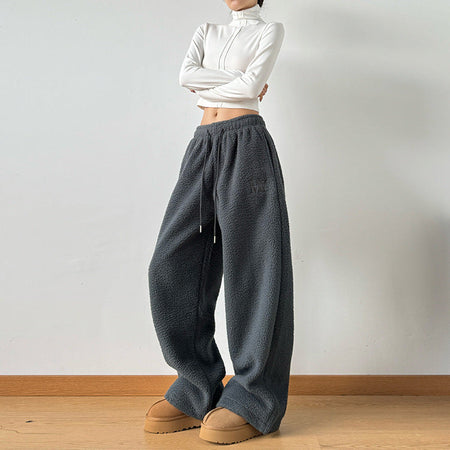 Key Features: High waist, drawstring, straight-leg loose fit, thick lamb wool, American-style design, warm & stylish