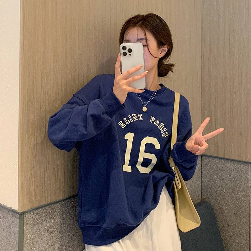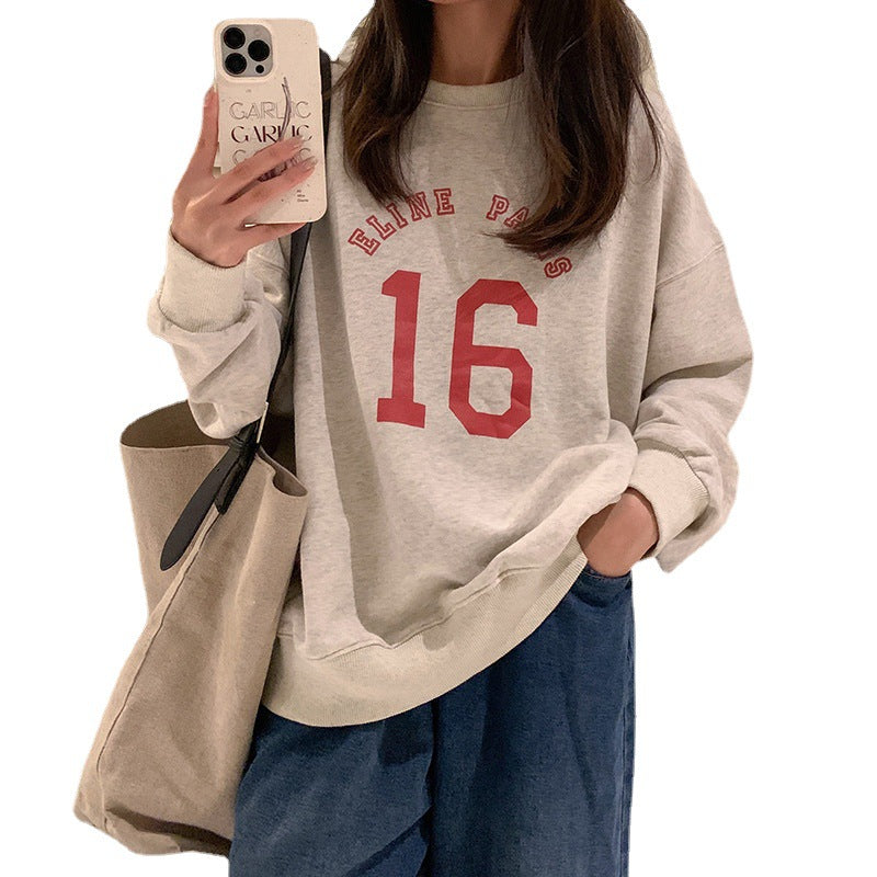Women’s Retro Letter Print Loose Sweatshirt