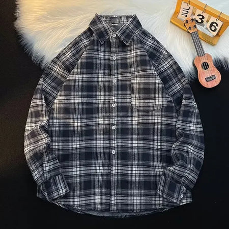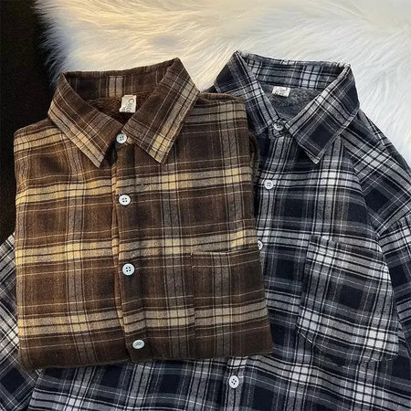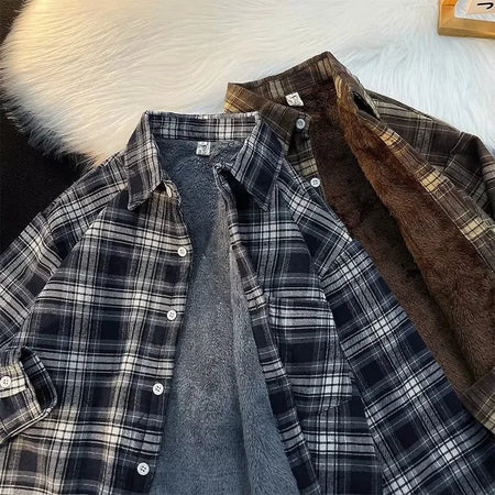 Men’s Retro Plaid Fleece-Lined Shirt – Warm & Casual