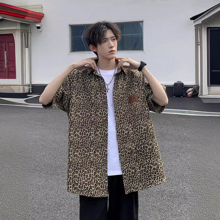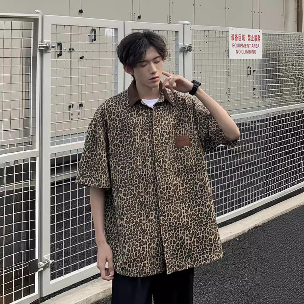 Leopard Print Shirt โ American Style Summer Half Sleeve