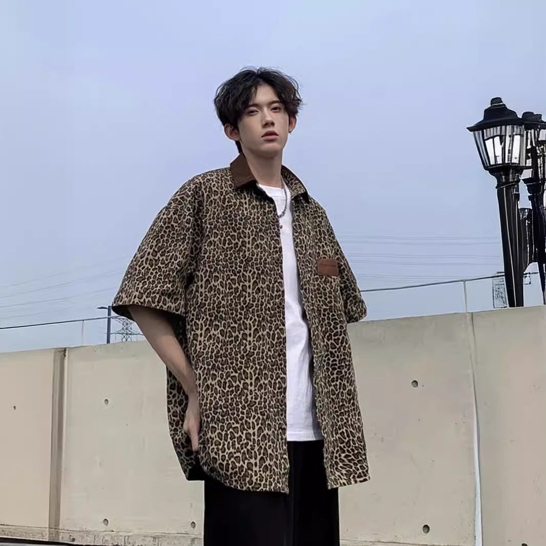 Go bold with this Leopard Print Shirt โ inspired by vintage American fashion ๐พ. With a loose half-sleeve fit and eye-catching pattern, this shirt makes every summer move wild, cool, and confident ๐.