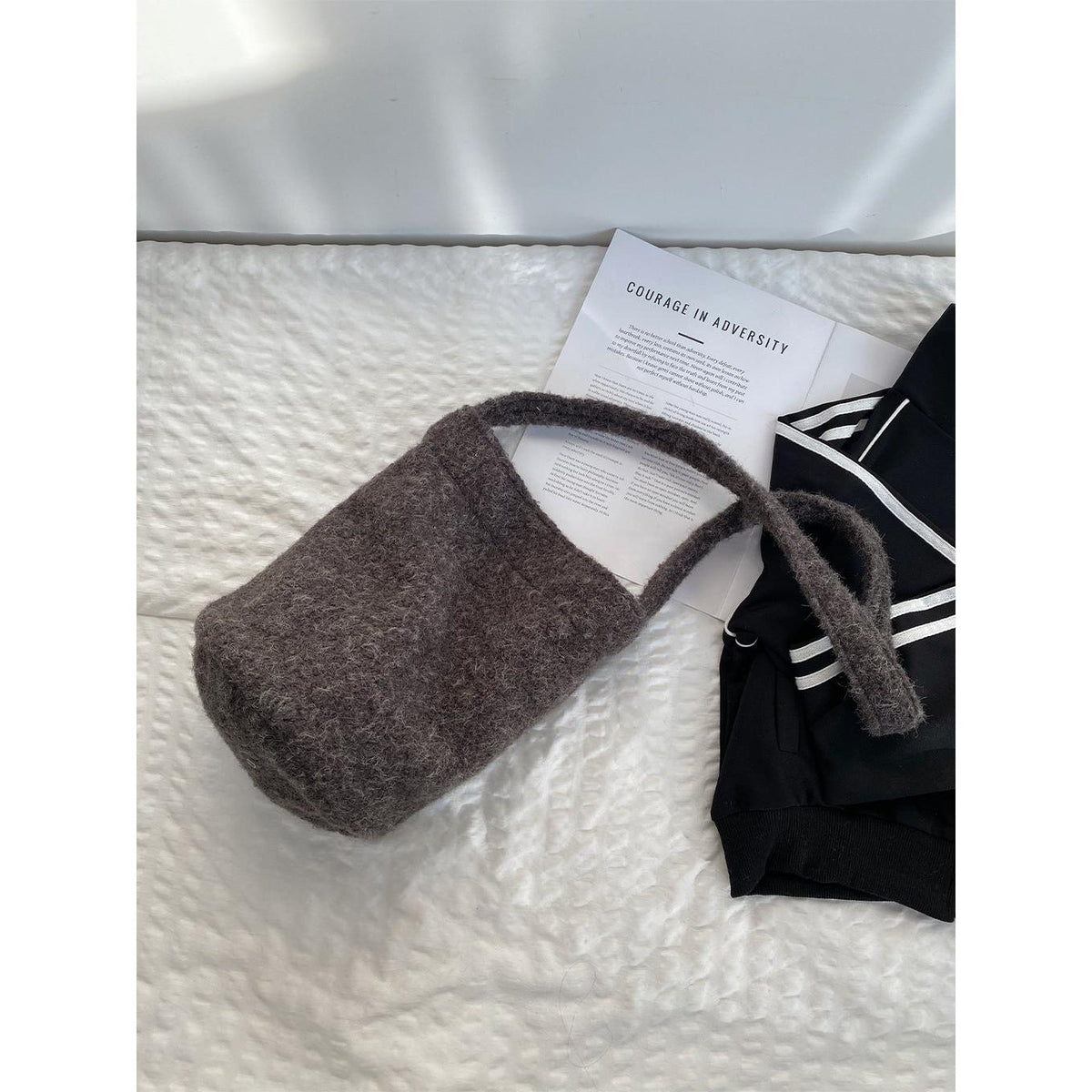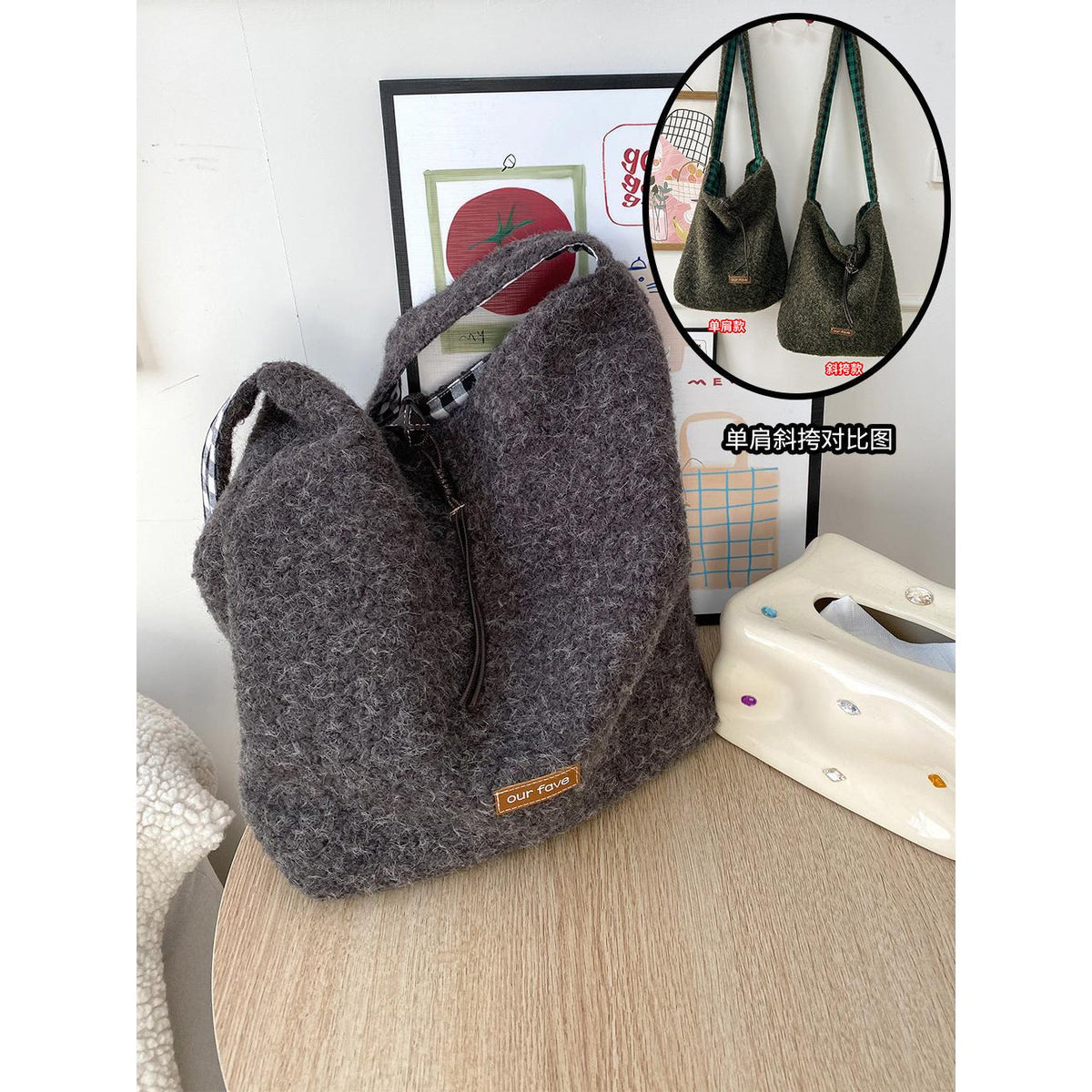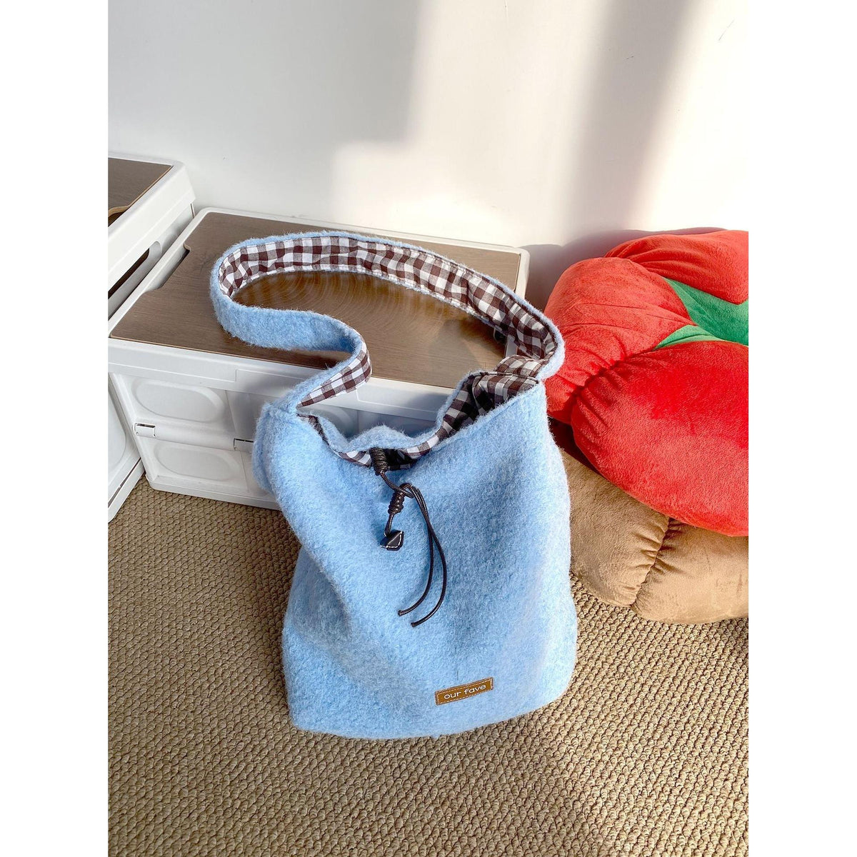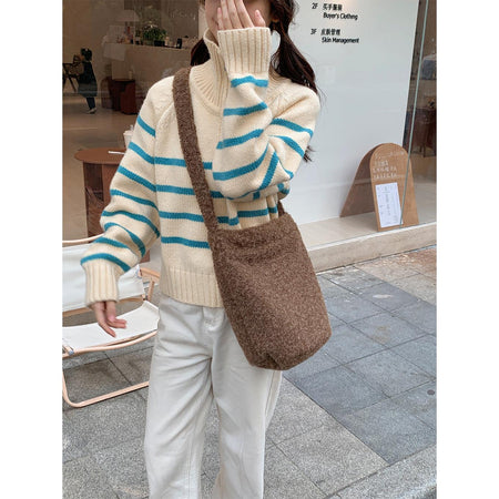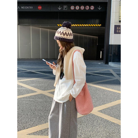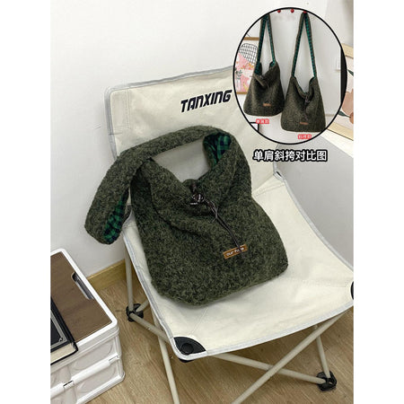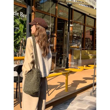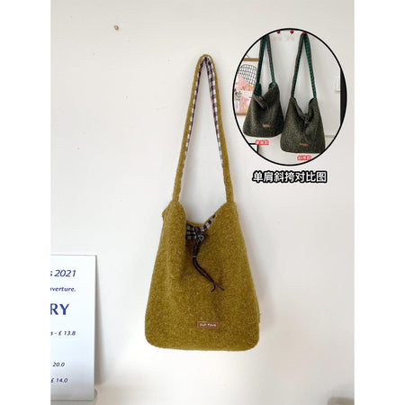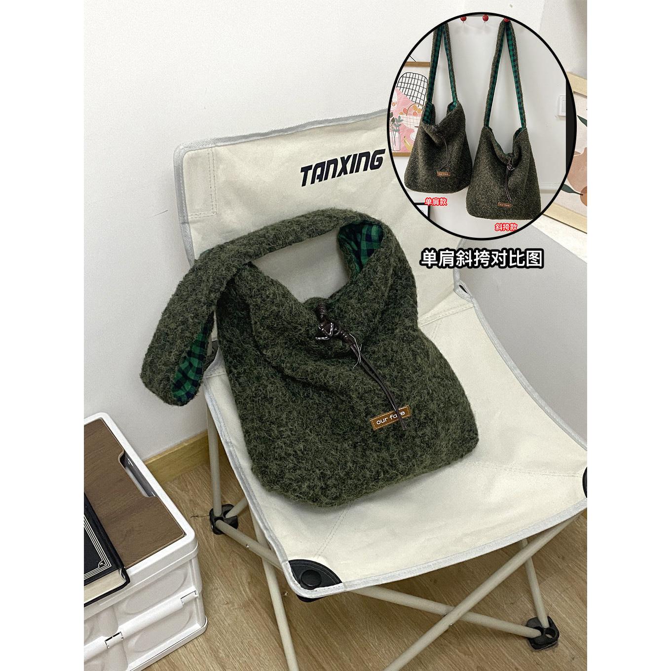 A fashionable bucket bag that combines warm texture, space, and versatility effortlessly 💖