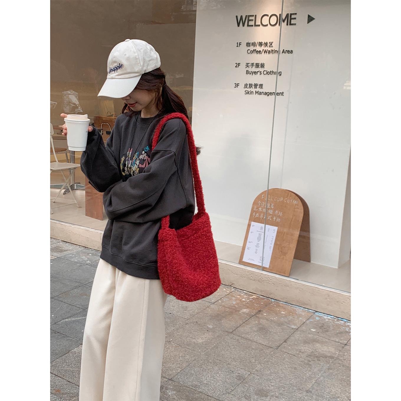 Upgrade your autumn and winter fashion with the Ankora Red Mao Mao Plush Bucket Bag, a stylish blend of soft waxy texture, cozy plush feel, and large-capacity design. Made for women who want comfort and elegance, this bag works perfectly as a single-shoulder or crossbody bag for daily use in Nepal ❄️✨