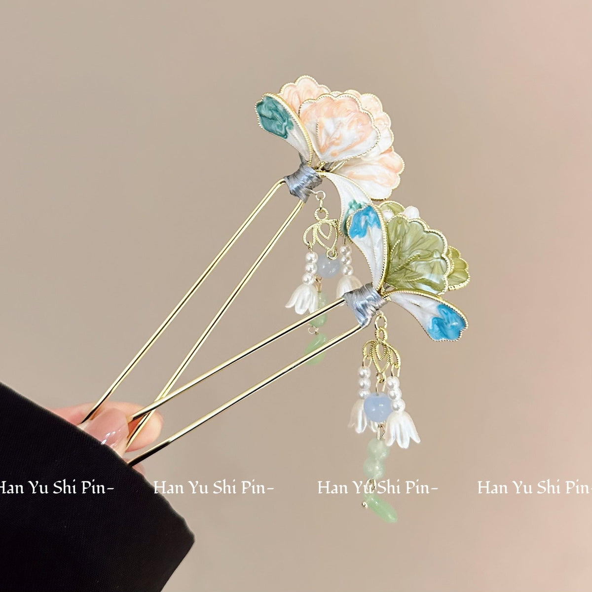 Enamel Flower Tassel U-Shaped Hairpin β Pearls & National Tide