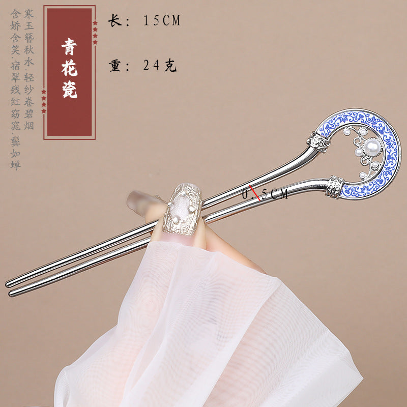 Antique Alloy U-Shaped Hairpin β Hanfu & Cheongsam Style