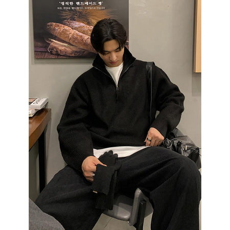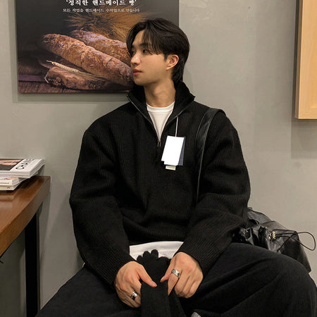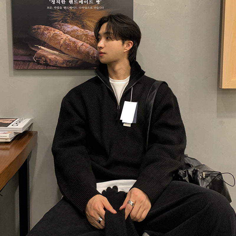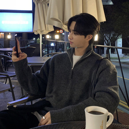 ASCLO Men’s Half-Zipper Knitwear Korean-Style Casual Sweater