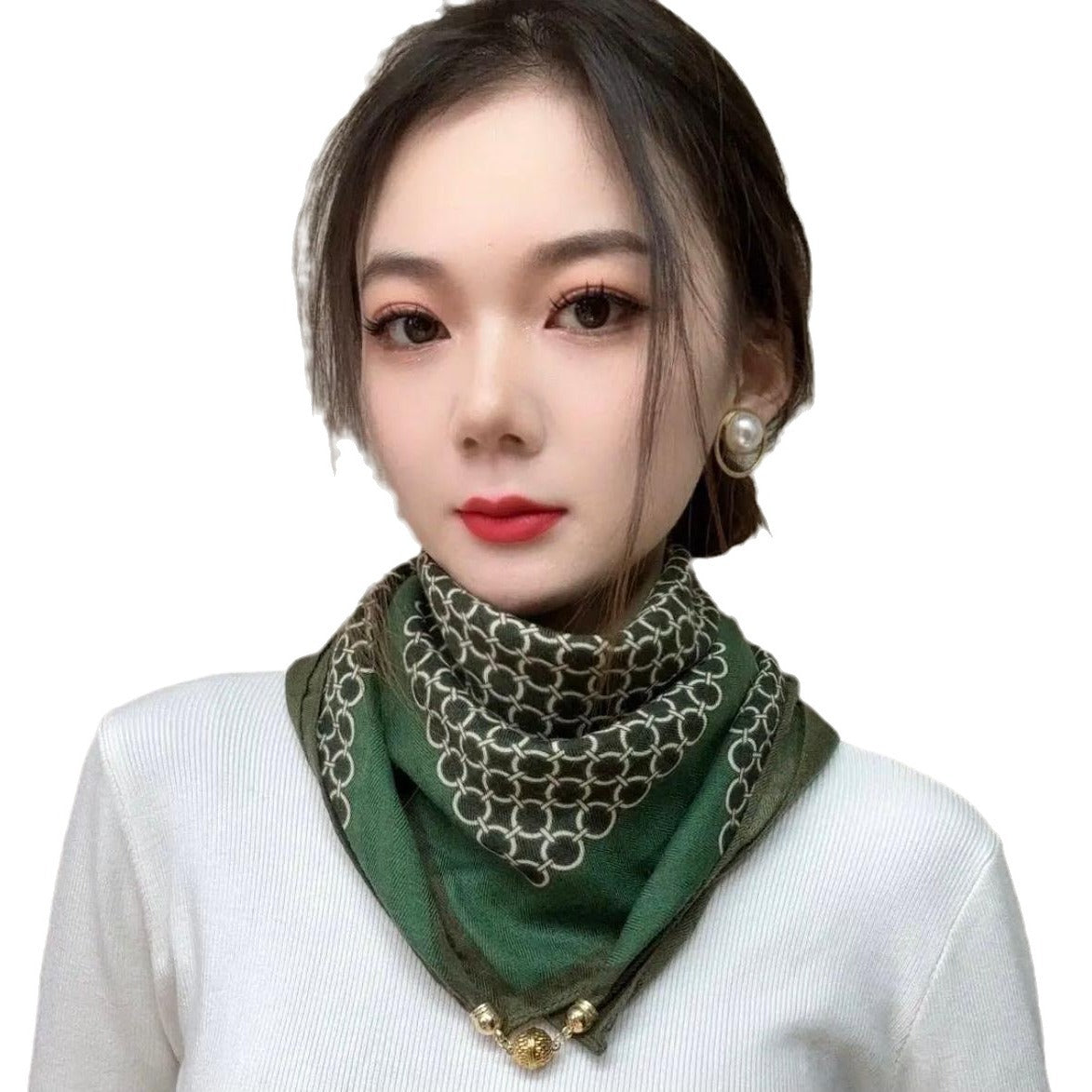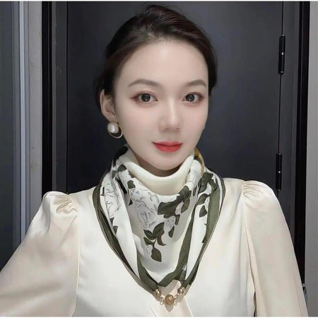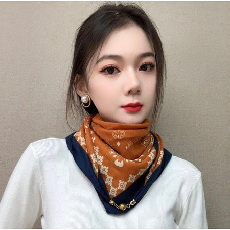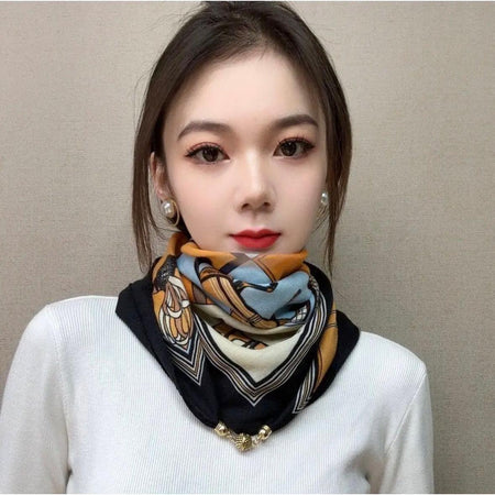 Vintage Print Magnetic Buckle Scarf Women