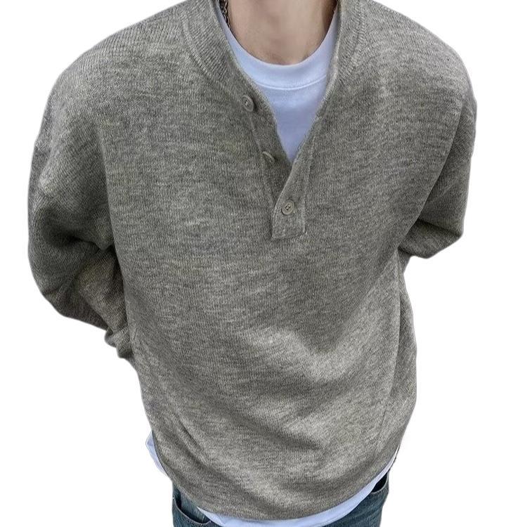 Men’s Henley Collar Sweater – American Casual Autumn Style