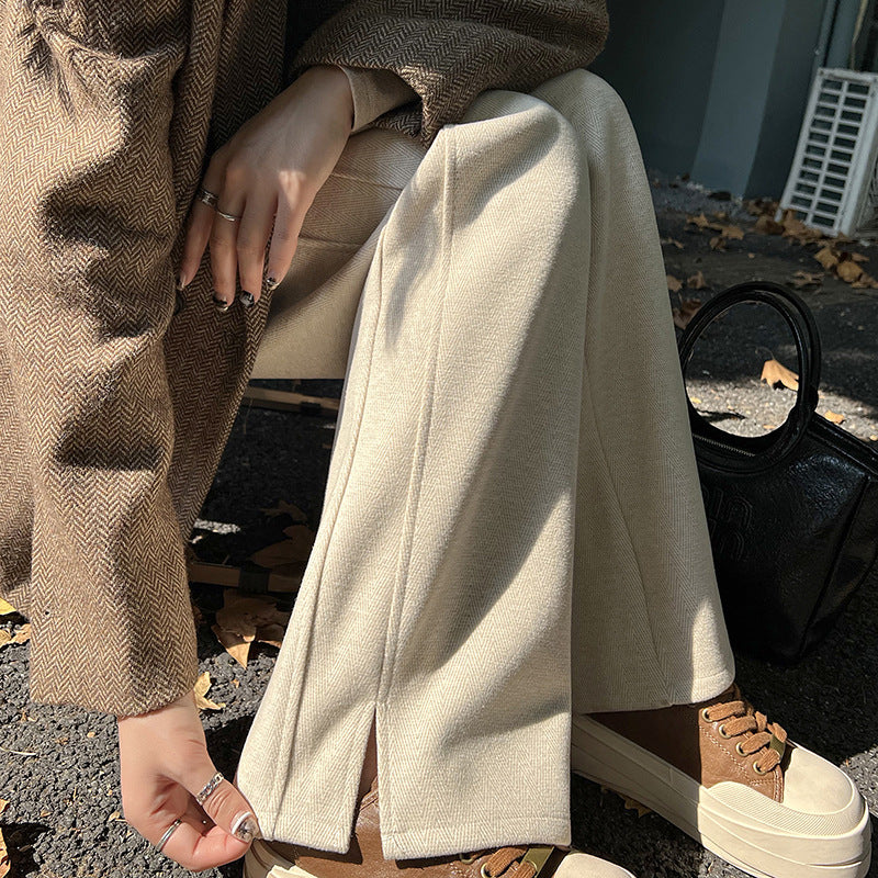 Made with high-quality acetate and cashmere blend, these pants provide softness, warmth, and a luxurious drape. The herringbone pattern adds a classic, timeless touch, while the split straight-leg design ensures both comfort and style. Perfect for pairing with sweaters, blouses, or jackets, these pants combine elegance with everyday practicality. ๐ธ