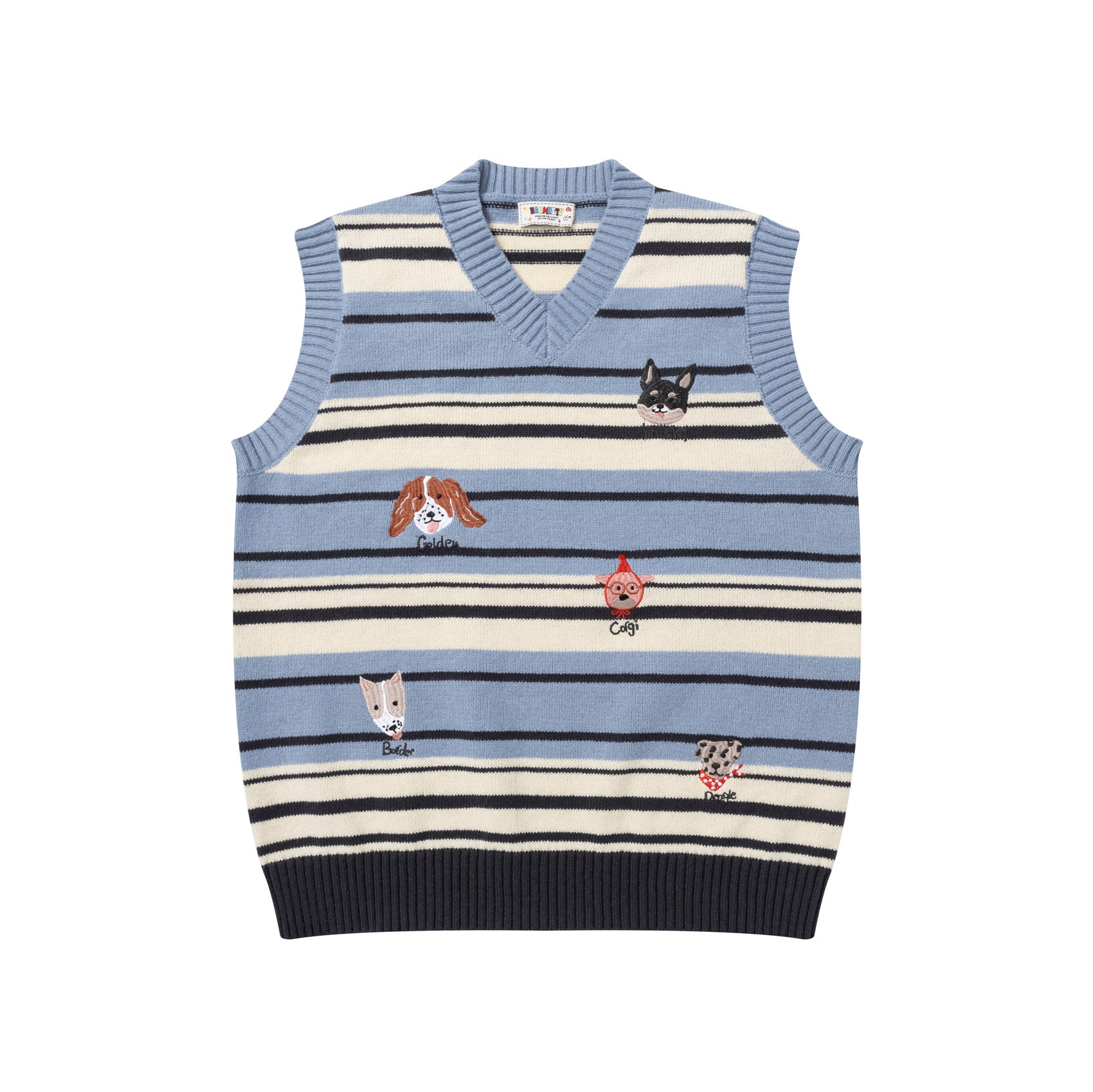 Sleeveless Sweater Vest – Retro Striped Letter Embroidery Knit
